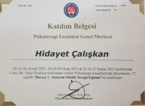 İstanbul Psikoterapi Enstitüsü’nde Psikiyatrist Dr. Tahir Özakkaş’tan Bütüncül Psikoterapi eğitimi aldım. Dinamik temelli Bütüncül Psikoterapi ekseninde, Bilişsel ve Davranışçı Psikoterapi, Psikanalitik Psikoterapi, Aktarım Odaklı Psikoterapi, Ego Durumları Terapisi, Duygu Odaklı Terapi ve Kısa Süreli Çözüm Odaklı Terapi yaklaşımlarını uyguluyorum.